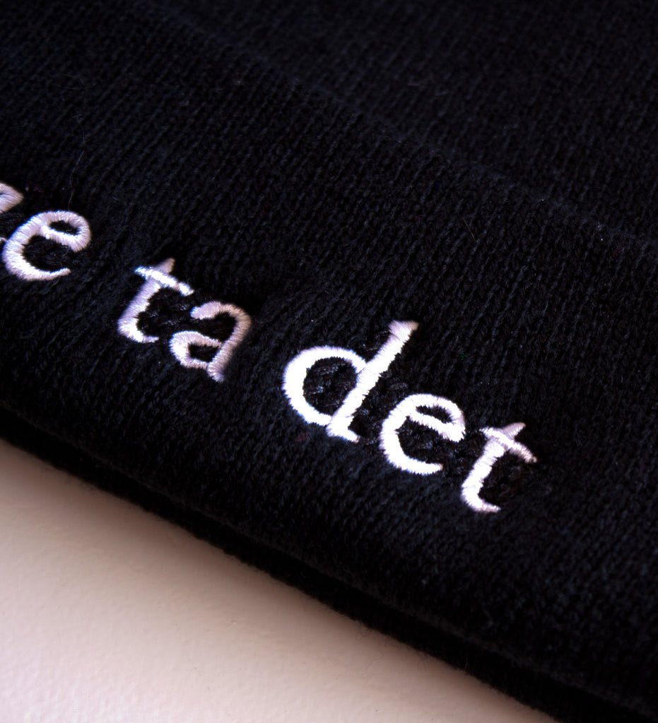 Cuff Beanie (without the Pom-Pom!) 100% Acrylic. One size fits most.